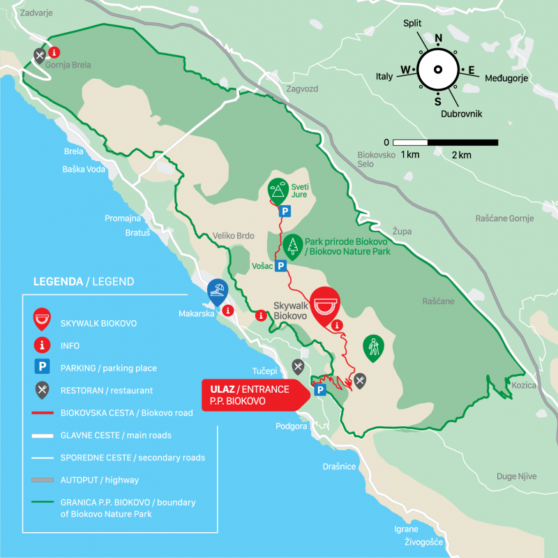 The main road entrance into the park is close to the city of Makarska (pop. 13,716), the centre of the Markarska Riviera, and you can reach it by car or bus.