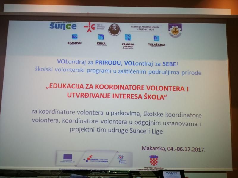 Javna ustanova „Park prirode Biokovo“ od 04. do 06. prosinca 2017. godine je domaćin radionice „Edukacija za koordinatore volontera i utvrđivanje interesa škola“ u sklopu školskog volonterskog programa u zaštićenim područjima prirode „VOLontiraj za PRIRODU, VOLontiraj za SEBE“.