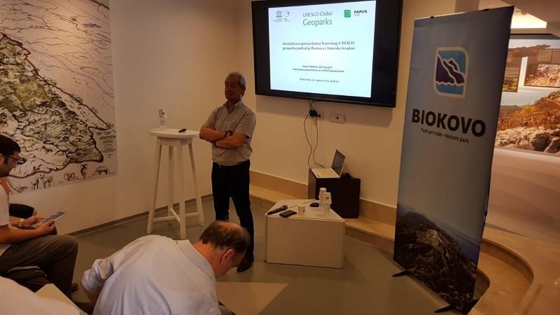 Također, prisutnima se obratio i Velimir Vidak-Buljan, ravnatelj JU „PP Biokovo“ koji je dao uvid u dosadašnje aktivnosti Javne ustanove, počevši od predstavljanja samostalne inicijative Parka prirode Biokovo pred Nacionalnim povjerenstvom za Geoparkove u srpnju 2018. godine do današnje zajedničke inicijative sa Gradom Imotskim.