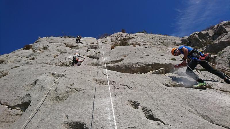 Cilj ove sanacije je hitno otklanjanje svih opasnih točaka međuosiguranja na cijelom penjalištu, te izmjena istih koristeći ljepljene točke međuosiguranja